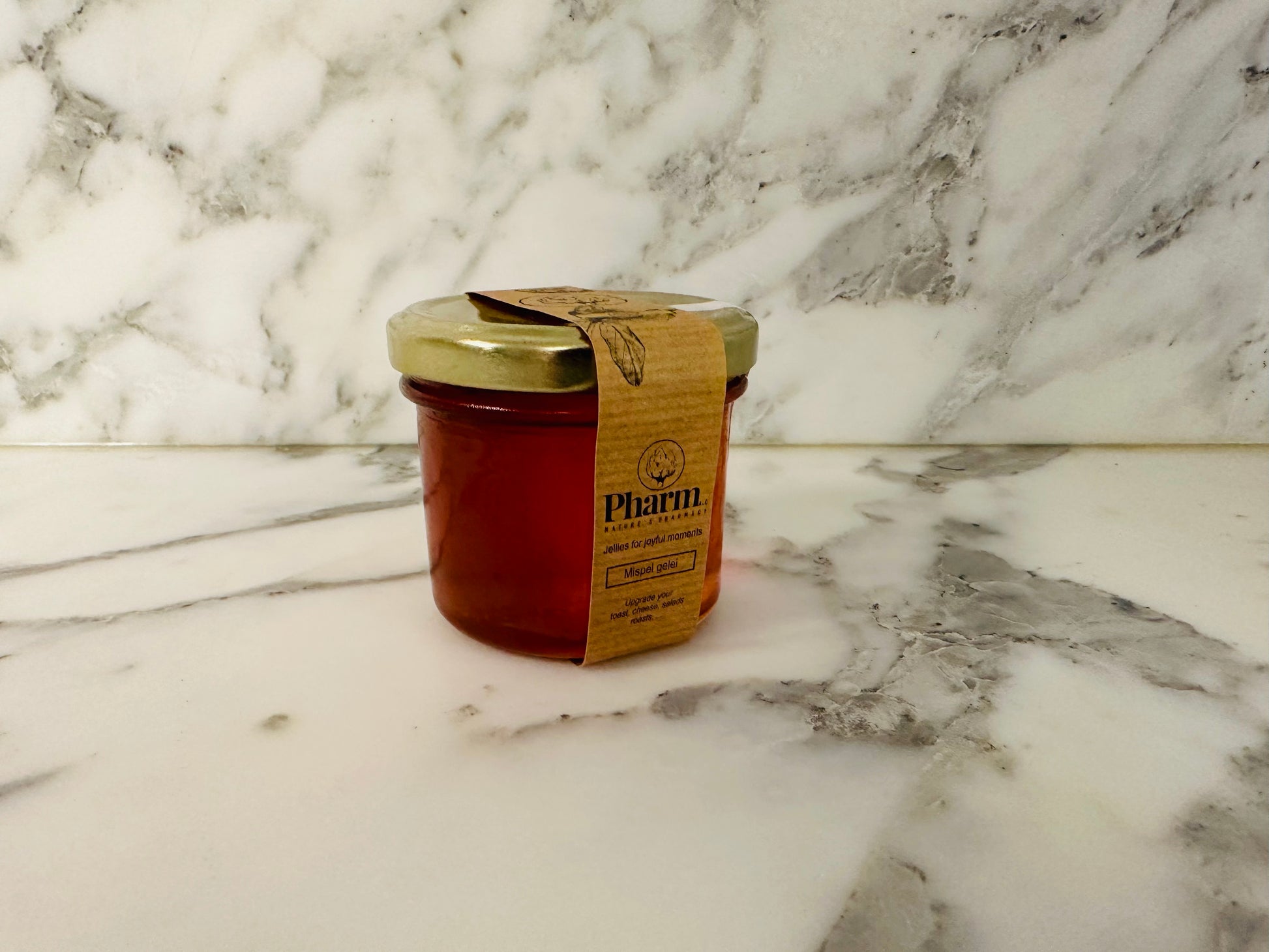 Deze gelei is een heerlijke en unieke [spread ander woord?] gemaakt met mispelfruit. Mispel is een kleine vrucht met een unieke smaak, vaak beschreven als een kruising tussen appel en peer, met een vleugje kweepeer en een lichte hint van roos. Deze gelei is perfect om te smeren op oude kaas, toast, crackers, in salades of als glazuur. Deze gelei is veelzijdig en zit boordevol smaak.
